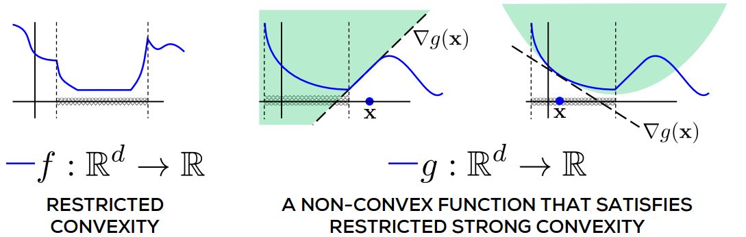 讨论分为三部分。第一部分是约束集,尽管是非凸的,但它们具备额外的结构可使投影高效实施。第二部分是目标函数中帮助优化的结构特性。第三部分是展示和分析适用于非凸问题的 PGD 算法的简单扩展。我们将看到对于具备较好结构目标函数的问题和约束集,类 PGD 算法可在多项式时间内收敛至全局最优,且收敛速度是线性的。