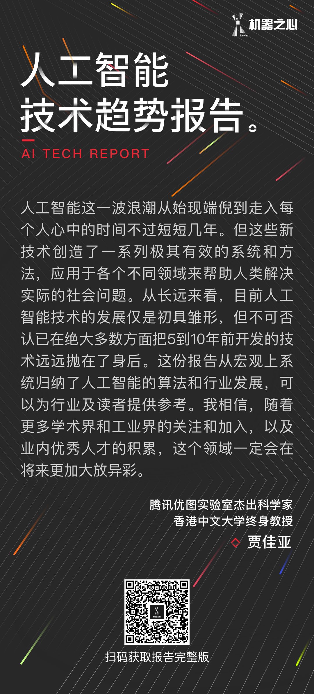 机器之心发布首份《人工智能技术趋势报告》,纵览人工智能的 23 个分支技术。明晰历史发展路径,解读现有瓶颈及未来发展趋势。点击阅读原文,立即获取报告完整版。