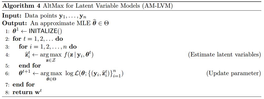 算法 4 概括了 gAM 对潜在变量学习问题的适应性。注意,算法中的步骤 4 和 6 可以在几个问题上非常有效地执行。