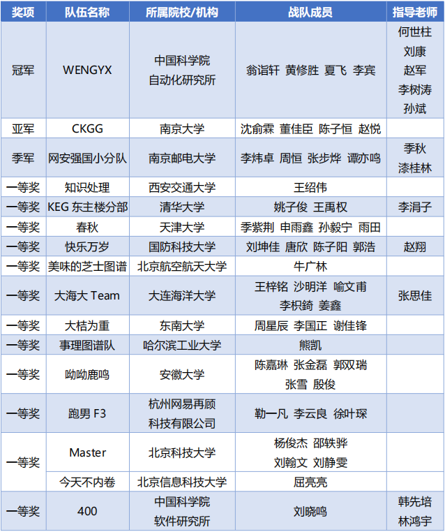 此外,根据本次“未来杯”AI学术联赛的奖项设置,入围64强小组赛及入围32强淘汰赛,并参与现场答辩的队伍还将获得本赛道的三等奖及二等奖获奖证书,具体获奖名单公示如下: