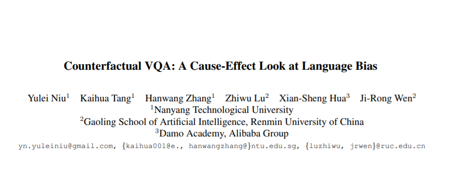 论文题目:Counterfactual VQA: A Cause-Effect Look at Language Bias