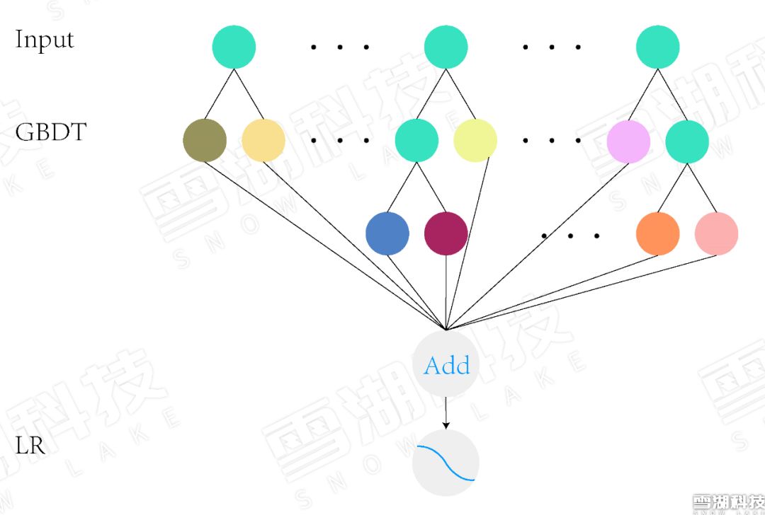特征工程分为两部分,一部分特征通过 GBDT 模型训练,把每颗树的叶子节点作为新特征,加入原始特征中,再用 LR 得到最终的模型。