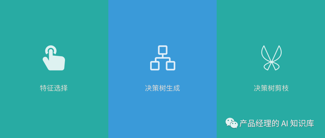 选择好特征后,就从根节点触发,对节点计算所有特征的信息增益,选择信息增益最大的特征作为节点特征,根据该特征的不同取值建立子节点;对每个子节点使用相同的方式生成新的子节点,直到信息增益很小或者没有特征可以选择为止。