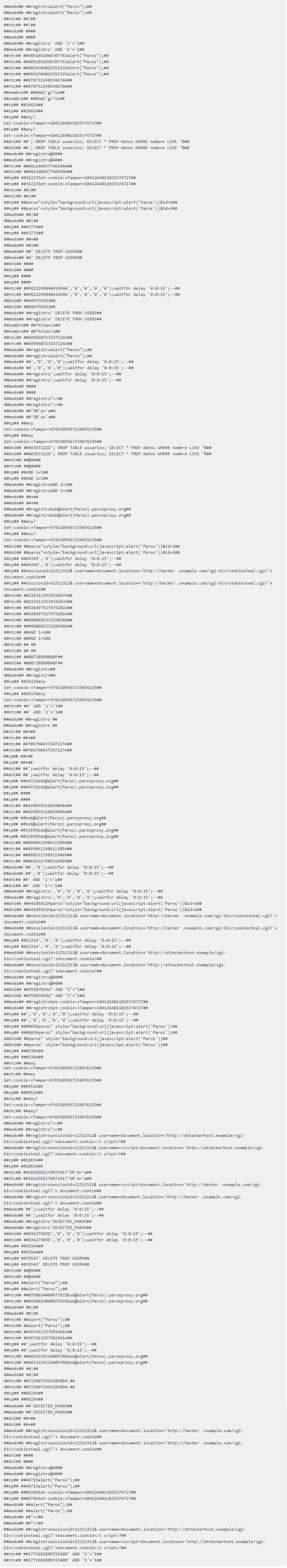 可以看到,至此已经把异常参数值提取出来了,包括SQL注入、XSS、命令注入、CRLF注入、文件包含等典型的攻击Payload。