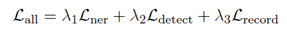 最终总损失包括:实体提及损失、事件类型发现损失和属性抽取损失之和。