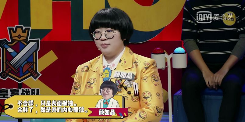 辩手颜如晶说过一句话:“不合群只是表面孤独,但如果我合群了,我就是真的孤独。”