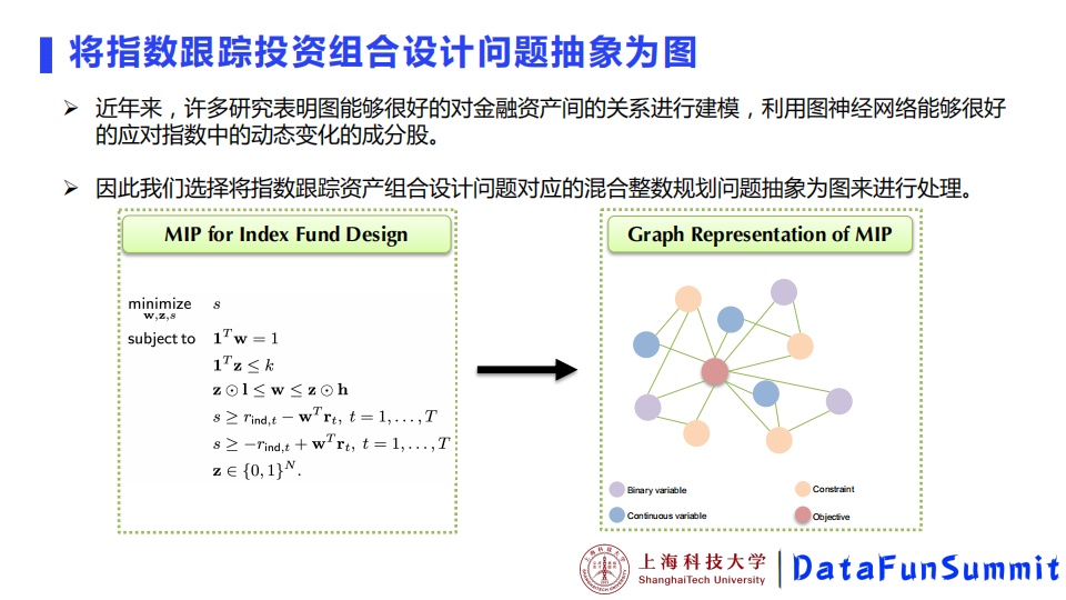所以前面资产组合配置的问题,或者混合整数规划的问题,最后就变成了通过图网络进行分类的问题,一个二分类的问题,选与不选。