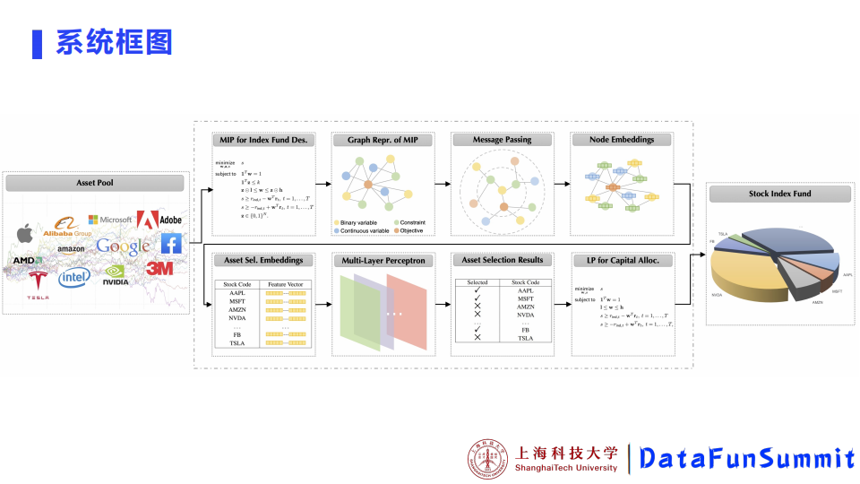 这是整个系统的框图,从最初的资产池到最后的股票指数基金的买卖份额配比,整个流程如图中所示。