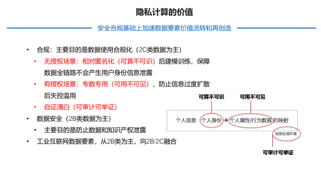 “它的关注点不是对于数据如何脱敏,而是数据处理、数据流动、价值提取的过程中间必须满足匿名化的要求,严格保持特定个人身份不能被识别。‘可算不可识’是要在满足匿名化要求的同时,提升数据要素应用的能力。”