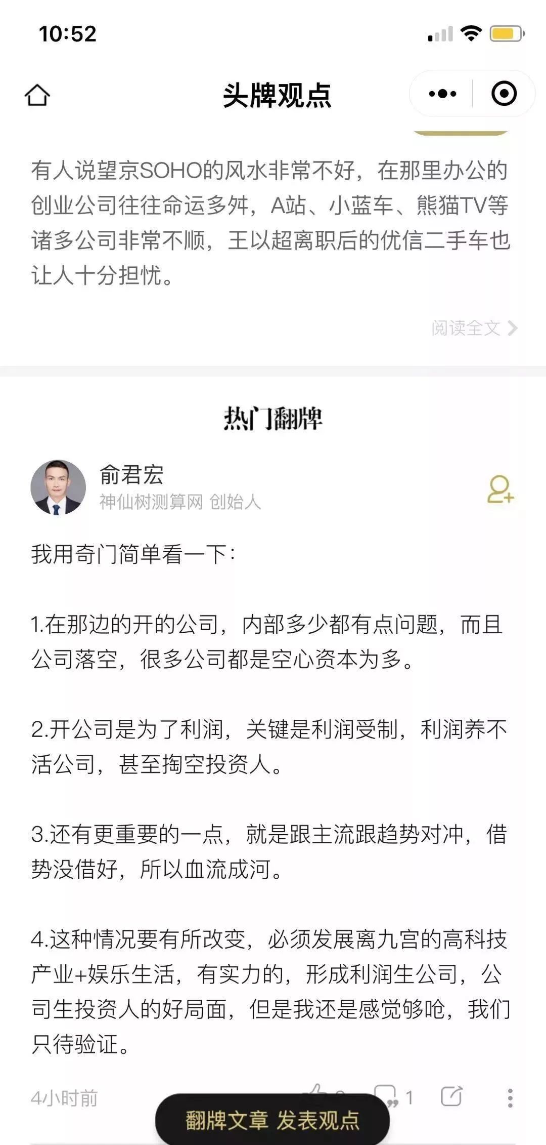 有曾在望京SOHO工作的朋友表示,“挺准的,我就看到SOHO入驻的公司确实好多黄了”。
