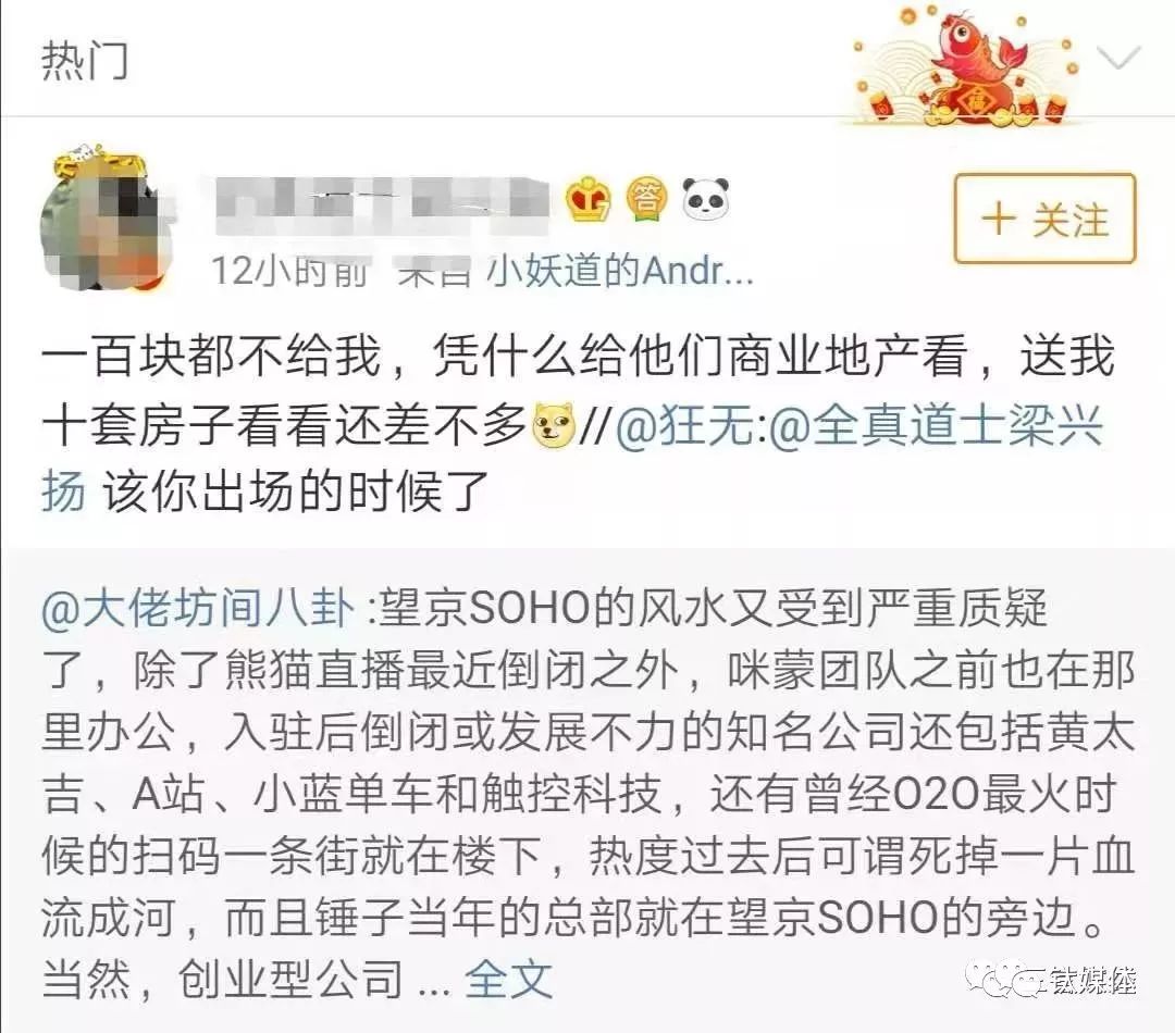 这不,不久前校长王思聪的熊猫直播突然“暴毙”(查看钛媒体此前文章:《突然破产,王思聪的熊猫直播怎么黄了?》),又为望京SOHO“滑铁卢”又新增一个案例。