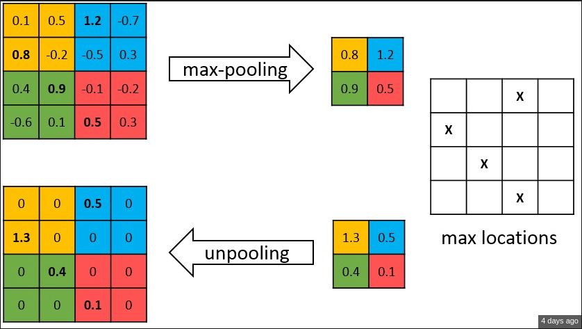SegNet 在解码器中使用去池化对特征图进行上采样,并在分割中保持高频细节的完整性。