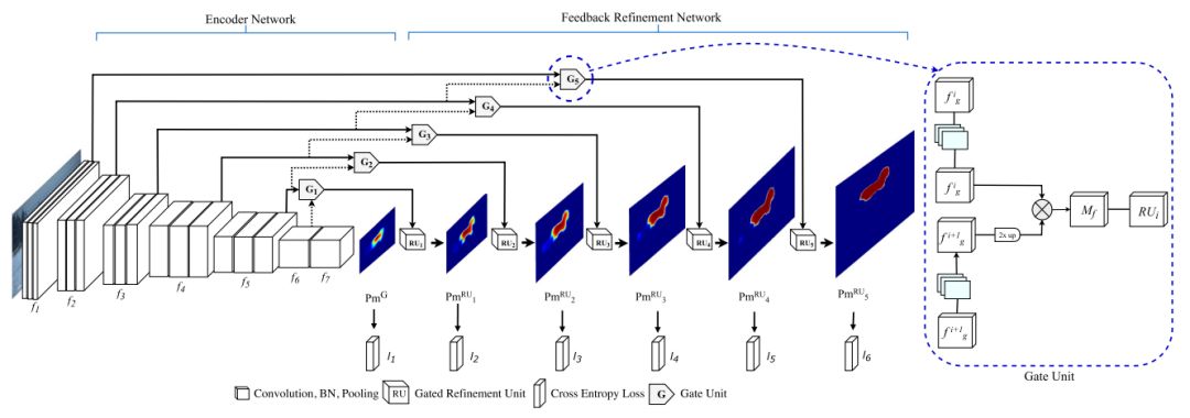 上述大多数架构都依赖于从编码器到解码器的简单特征,使用拼接、去池化或简单的加和。然而,在编码器中,从高分辨率(较难判别)层到对应的解码器中相应的上采样特征图的信息,不确定是否对分割有用。在每个阶段,通过使用门控细化反馈单元,控制从编码器传送到解码器的信息流,这样可以帮助解码器解决歧义,并形成更相关的门控空间上下文。