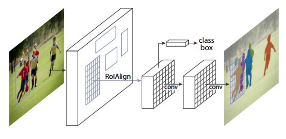 对每个实例进行的 RoIPool 操作已经被修改为 RoIAlign ,它避免了特征提取的空间量化,因为在最高分辨率中保持空间特征不变对于语义分割很重要。