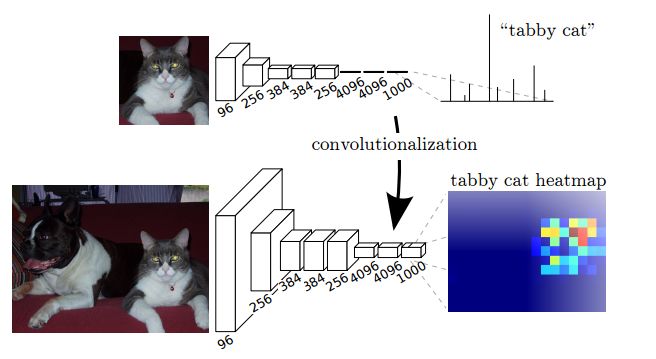 图3:将全连接层转换成卷积层,使得分类网络可以输出一个类的热图。
