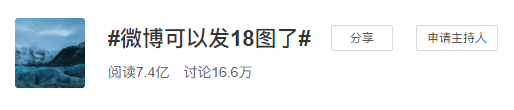 1. 微博能发18张图了,仅对粉丝数大于10万的用户开放