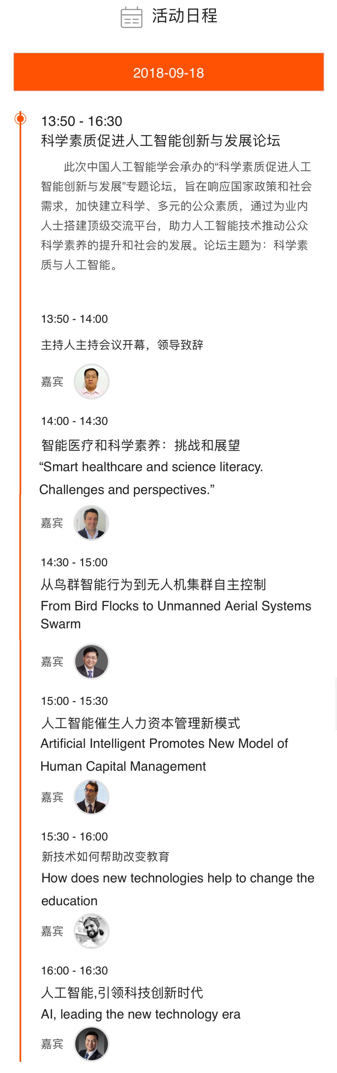 作为我国智能科学技术领域唯一的国家级学会——中国人工智能学会,在此次由中科协主办的世界公众科学素质促进大会上将为业内人士搭建顶级交流平台,助力人工智能技术推动公众科学素养的提升和社会的发展,承办“科学素质促进人工智能创新与发展” 专题论坛。来自国内国际的多位学术界、产业界人工智能专家学者将出席论坛并发表相关专题演讲。该论坛将引导社会公众更多地关注科学家“普遍认同”的科学,并共同探索人工智能科学素质在国际化新途径,形成文化、教育、社会与科技创新良性互动上的共进局面。