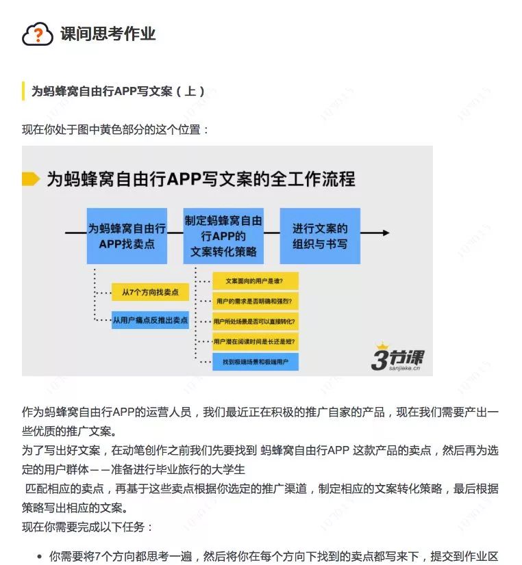 但在3)的维度下,能够满足“大量真实实践机会”和能够提供“高质量反馈”的课程,其实也挺少的。这里可以顺带安利一下三节课的产品经理P1课程和互联网运营P1课程了,这两门课程都是专为0-1岁的从业者而设计,基本有几个特点——