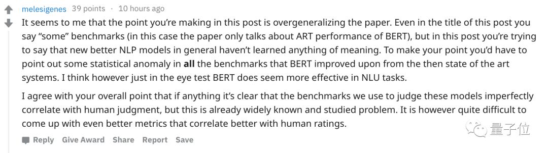 作者还说,他并不否认BERT和其他新模型的价值,但是并不相信一些Benchmark。