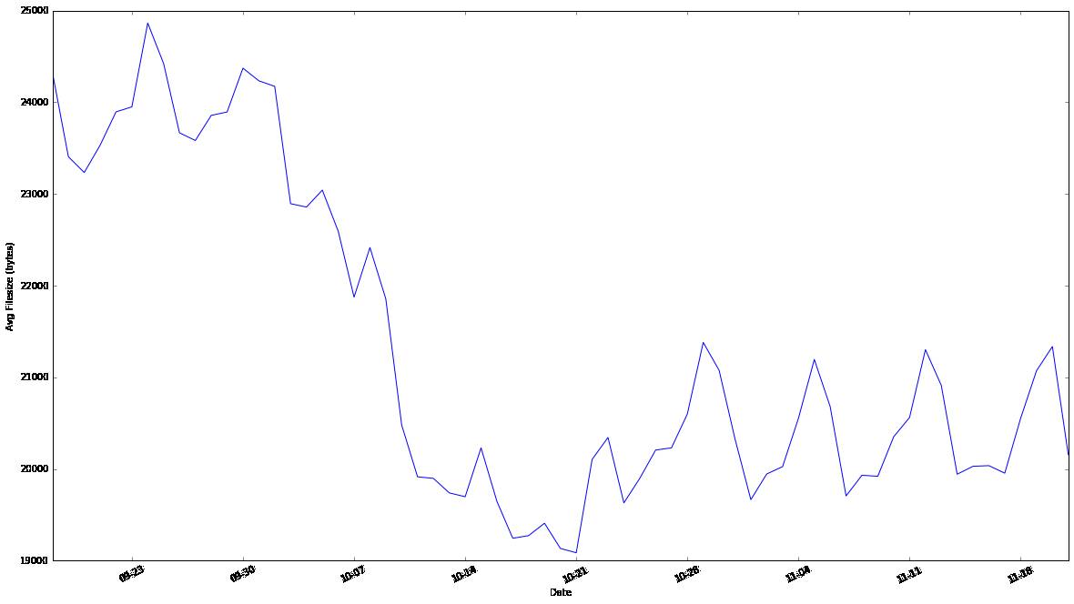 总的来说,我们的图片文件平均大小降低了约 30%,而这一收效来自于我们规模最大、最常用分辨率的图片,随后用户访问网站的速度更快,而我们每天可以节约 TB 级别的数据流量。这些措施都已体现在 CDN 中:通过 CDN 衡量的,不同时段的平均文件(图片和非图片静态内容)大小。