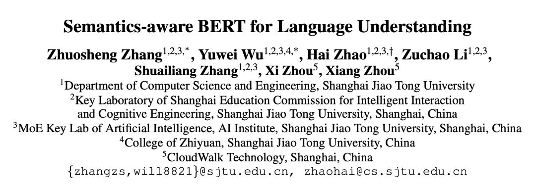 为了增强自然语言理解,本文提出通过预训练的语义角色标注模型引入显式的上下文语义标签信息,并引入一种改进的语言表示模型——语义感知 BERT (SemBERT),它能够在 BERT 为基础的骨架网络上,显性地融合上下文语义信息。SemBERT 保持了 BERT 的易用性,只需进行适应性的微调,而无需对特定任务进行大幅度的模型修改。