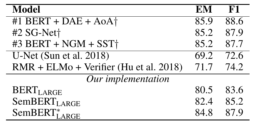然而,许多研究者发现当前许多机器阅读理解模型未能“真正”地理解语义信息,在一些人类易懂的题目上机器容易犯错。现有的语言表示模型(包括 ELMO、GPT、BERT、XLNet 等),只利用了简单的上下文特征,如字符或子词嵌入,缺乏对结构化语言学信息的考虑,而这些信息可以为语言表达提供丰富的语义和结构化知识,构建更加精确的文本表征。