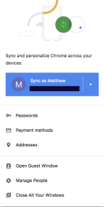 Chrome的同步UI是一种暗模式(指经过特意设计诱使用户完成某项动作的界面设计)。现在我被迫登录到Google,于是看到了这个以前从未见过的全新的菜单。它长这样: