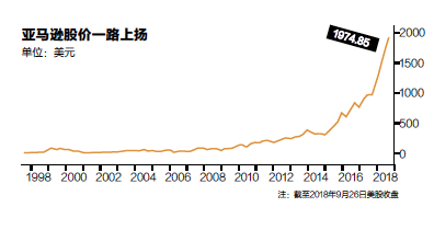 2018年9月初,亚马逊股价一度涨至2050美元,市值也突破1万亿美元,是全球第二家市值达到1万亿美元的美国公司。亚马逊2018年7月27日发布了2018年第二季度财报,各重要指标分外亮眼。第二季度销售额为528.86亿美元,同比增长39%;季度净利润为25.34亿美元,2017年同期为1.97亿美元,同比增长1186%。每股收益也高于华尔街预期2倍有余。