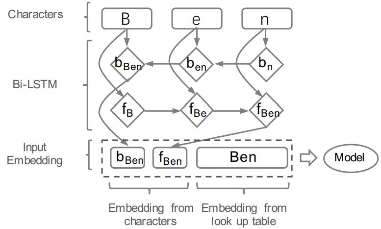 图 3: The character embeddings of the word “Ben” are given as input to a bidirectional LSTM.