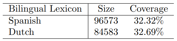 表 1: Bilingual Lexicons used in our experiments on Spanish and Dutch.