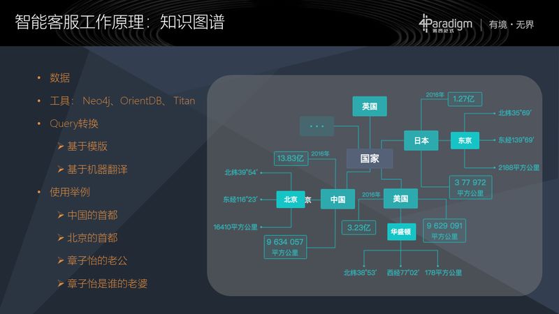 这里还有一些我们自己的系统支持的知识图谱问答的例子。我们现在的系统已经具备了通用知识图谱的能力,行业知识图谱或者自定义的知识图谱很快会上线。大家就可以看到,这是第二个模块,知识库和知识图谱可以整合成一个模块来做,统称为知识库问答。