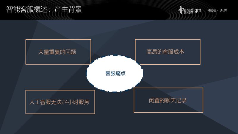 首先是智能客服产生的背景:为什么要有智能客服这样的一个产品,或者说研究方向呢?主要有以下这几个原因: