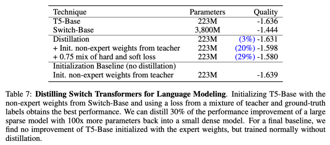 虽然无法完整维持万亿参数模型的质量,但通过将稀疏模型蒸馏为稠密模型,可实现 10-100 倍的压缩率,同时获得专家模型约 30% 的质量改进。