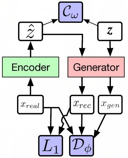 观察 GAN 中的梯度变化,就非常容易发现改变其轨迹的新思路。如果显式损失函数的梯度无法在两个神经网络间(判别器和生成器)回流,却可以在三个神经网络间回流,那么它能被应用在何处?如果梯度无法通过传统损失函数回流,却可在这些神经网络之间直接来回呢?从基本原理出发,我们很容易发现未被探索的路径以及未被解答的问题。