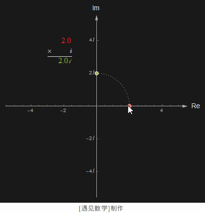 复数的乘法, 就如上面所述, 数乘以 i 相当于这个转动 90°: