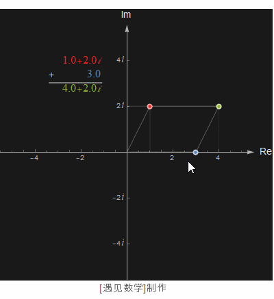 复数有如何运算, 比如可以两两相加, 也就是两个复数实部和虚部分别对应相加, 可以看成是平移的操作.