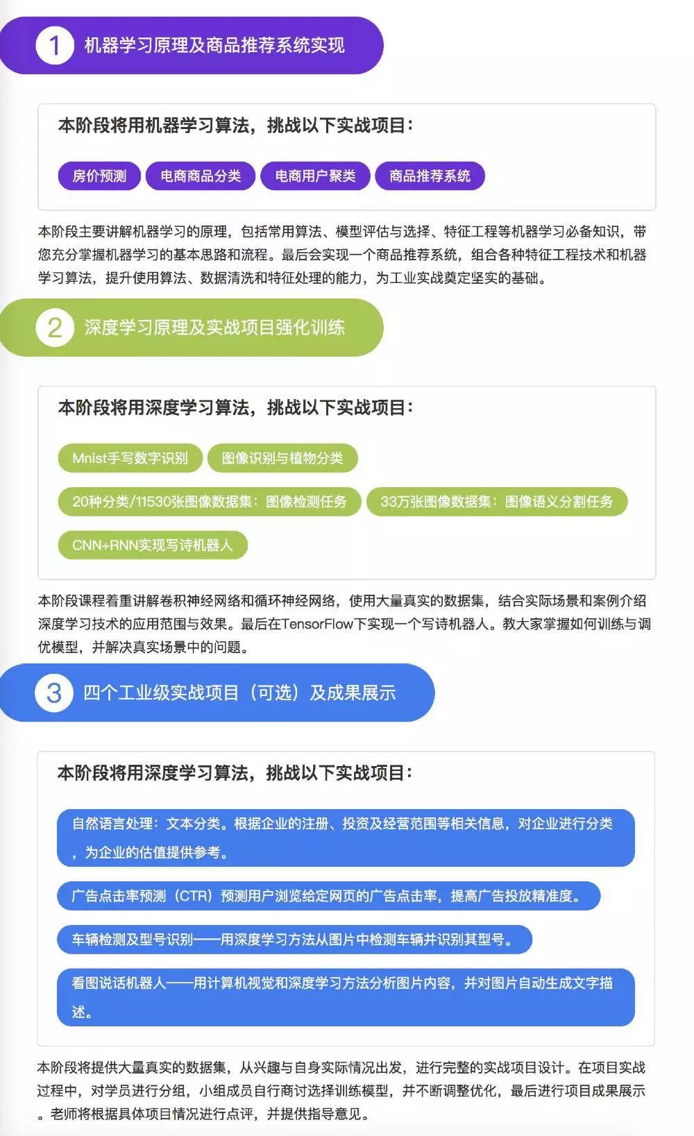 在学习课程的同时,推荐大家学习一下 Hadoop、Spark 等大数据相关的课程;也推荐其他学员参加比赛。公司面试的时候非常关注学员的项目经验,对于比较欠缺项目经验的学员来说,如果没有 AI 方面的实战经验,可以阐述自己参加比赛的经验,以及用到的方法等等。