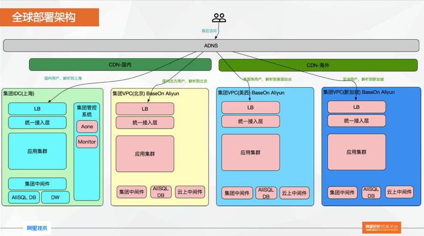 阿里巴巴在全球分布员工近6万人;在美国、英国、澳大利亚、法国、德国、印度、俄罗斯、新加坡、阿联酋、甚至一些中东国家都设有工作室。在这种情况下,全球访问和就近访问成为阿里内外为海外员工服务的挑战。