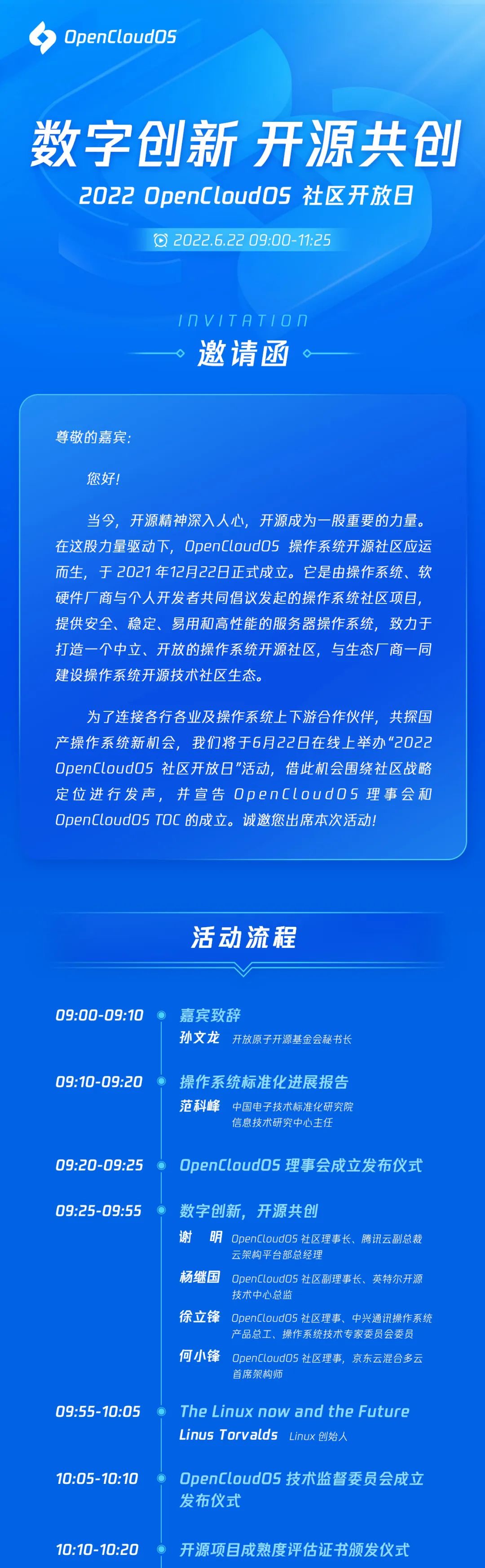 6 月 22 日,Linus Torvalds 将在 OpenCloudOS 社区活动上亮相,围绕“The Linux now and the Future”与神秘嘉宾对话,大咖们将分享对开源项目、开源社区和开发者等方面的最新思考和看法。这个活动就是“2022 OpenCloudOS 社区开放日”。