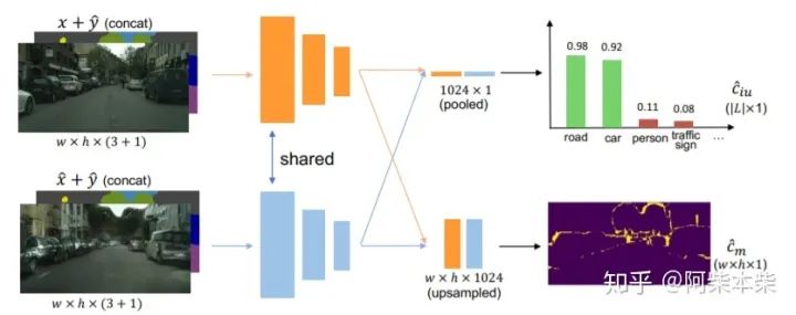 已知条件: 1)输入图像x;2)训练好的语义分割模型M;3)输入图像的经过语义分割模型M后的预测结果y^.