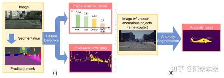 目标: 现实语义分割的落地场景中,输入到语义分割模型中的图像是没有真值的,但是我们又想知道分割结果的好坏,所以我们的目标是进行故障检测(Failure Detection) 和 异常检测/分割(Anomaly Segmentation)。