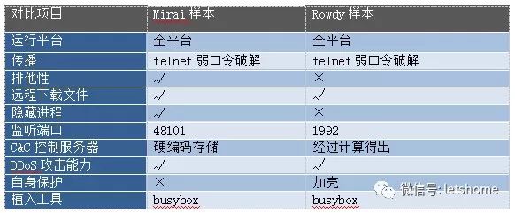 经过对比发现,Rowdy 其bot上线方式与 Mirai 相同,ddos攻击代码一致,代码结构基本无变化,基于这些特征已经可以确定,Rowdy 样本是Mirai物联网恶意软件的变种。