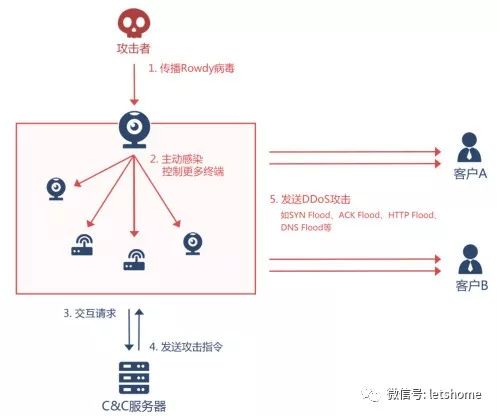 还有就是捕获手段非常简单,可以在短时间内大量组织起来发动 DDoS 攻击的设备。只要设备搭载了相关的操作系统,并且能够联网,那么黑客就可以入侵操作系统,让这台设备去干些什么。