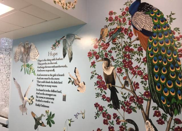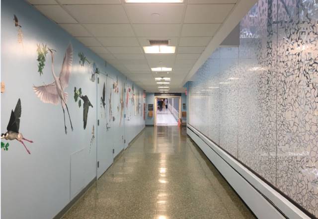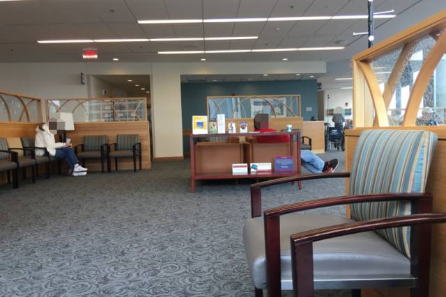 21日,在盛诺一家客服的陪同下,我们第一次见到美国最好的医院是什么样子。一句话,就不像医院的样子,很漂亮,干净得不像话,没有刺鼻的药水味,里里外外看不到多少人,候诊区竟然有电视、地毯和鱼缸,还有各种吃的喝的随便自取,搞得我俩有点像像刘姥姥进大观园,看到什么都感叹一番。