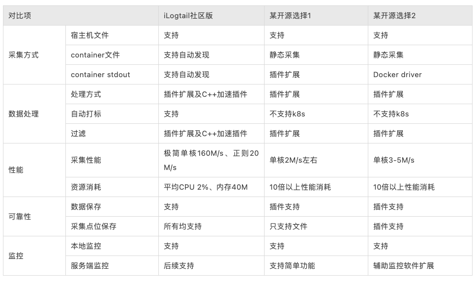 对于可观测数据的采集,有很多开源的采集器,例如Logstash、Fluentd、Filebeats等。这些采集器的功能非常丰富,但在性能、稳定性、管控能力等关键特性方面iLogtail因其独特设计而具备优势。