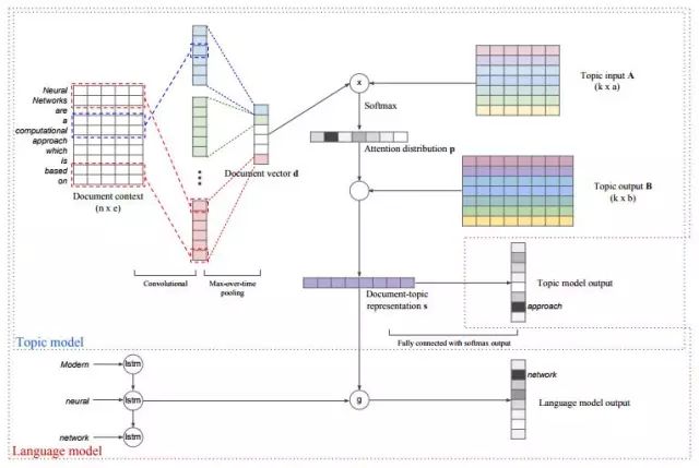 这篇文章的核心思想是想彻底用Neural的思想来结合Topic Model和Language Model。当然,既然这两种模型都是文字处理方面的核心模型,自然之前就有人曾经想过要这么做。不过之前的不少尝试都是要么还想保留LDA的一些部件或者往传统的LDA模型上去靠,要么是并没有和Language Model结合起来。
