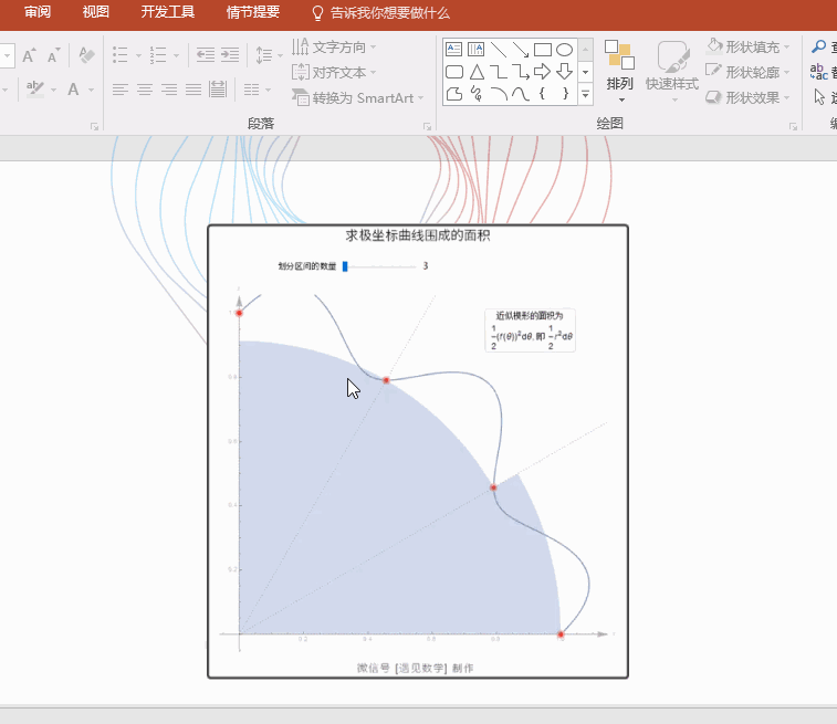 在 PPT 中可拖动进度条来查看求极坐标下曲线面积的动画