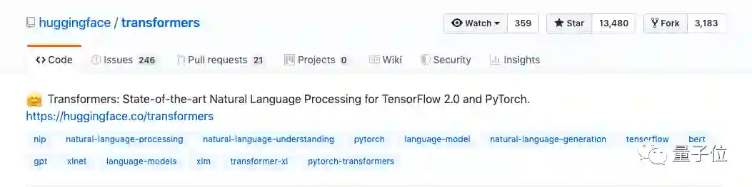 这一项目,一开始名为pytorch-pretrained-bert,在1.2版本时更名为pytorch-transformers,现在变为transformers。