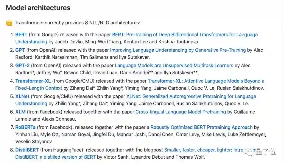 更直接一点说,transformers 2.0项目,就是一个NLP领域的SOTA的集合。