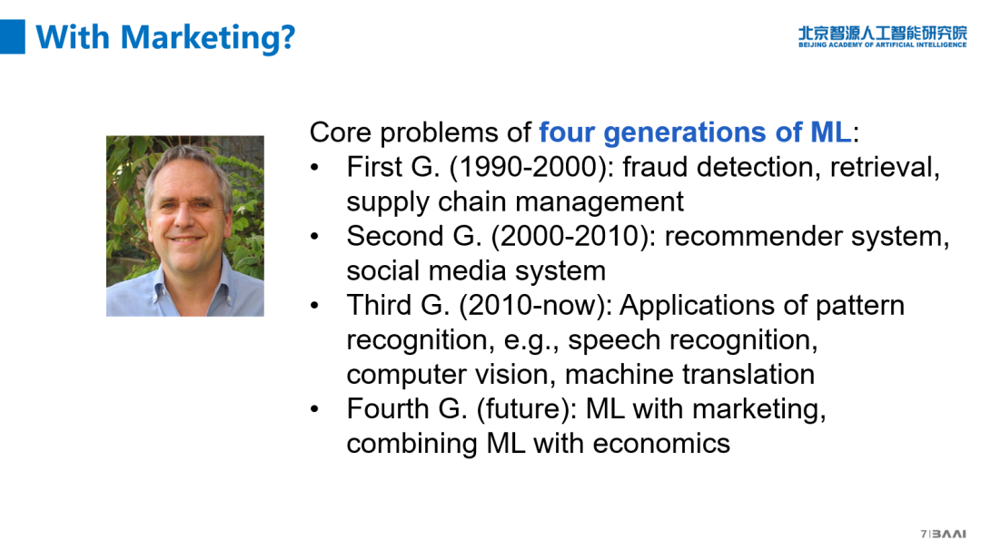 第三个是M. Jordan的观点,他认为机器学习已经发生了三代,第四代机器学习则是要跟市场结合在一起。